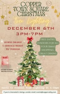 Christmas Tree Lighting More details to come! + Add to Google Calendar + iCal export 00 days 00 hours 00 minutes 00 seconds Date Dec 06 2025 Time All Day Location The Town Square at Copper Valley Copperopolis, California Share this event
