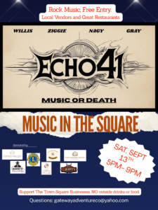 Music in the Square – Echo 41 The event is finished. Date Time 5:00 pm - 9:00 pm Location The Town Square at Copper Valley Copperopolis, California Next Event Cabernet Franc Gourmet Dinner Date Apr 18 2026 Time 6:00 pm - 9:00 pm Share this event